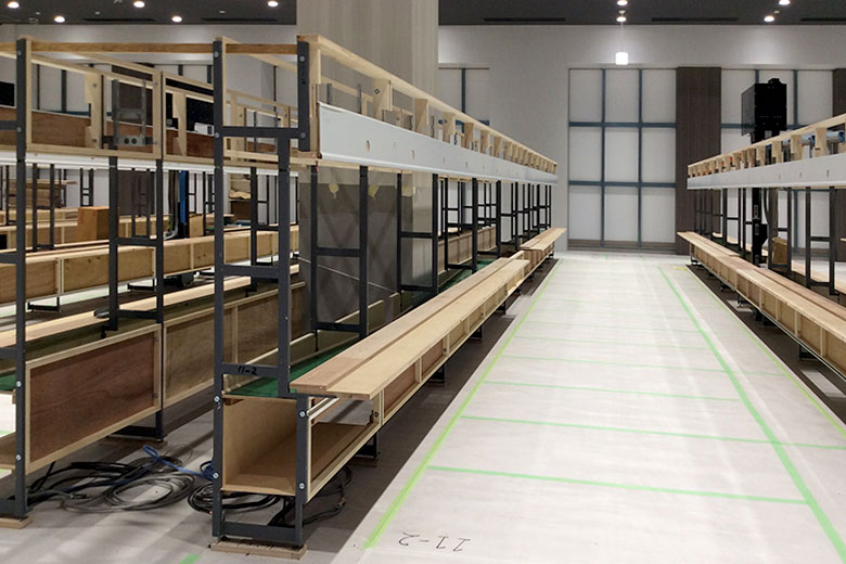 ユニット方式とは、部材を組み上げホールに搬入することにより、